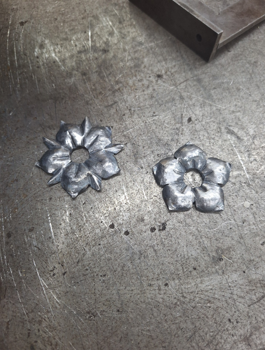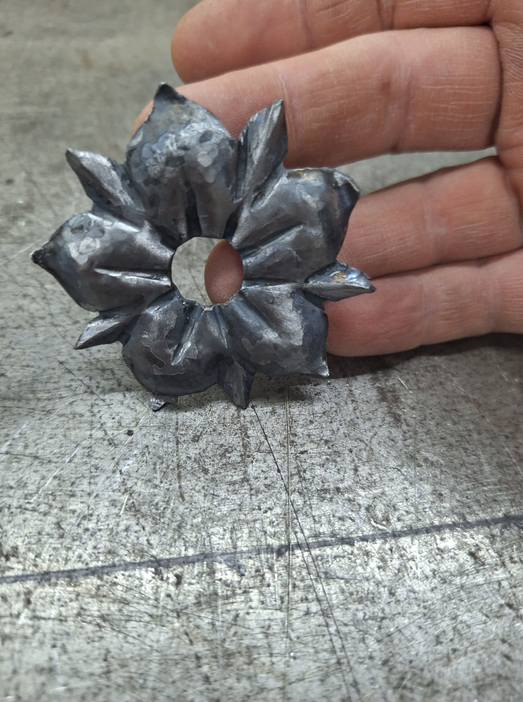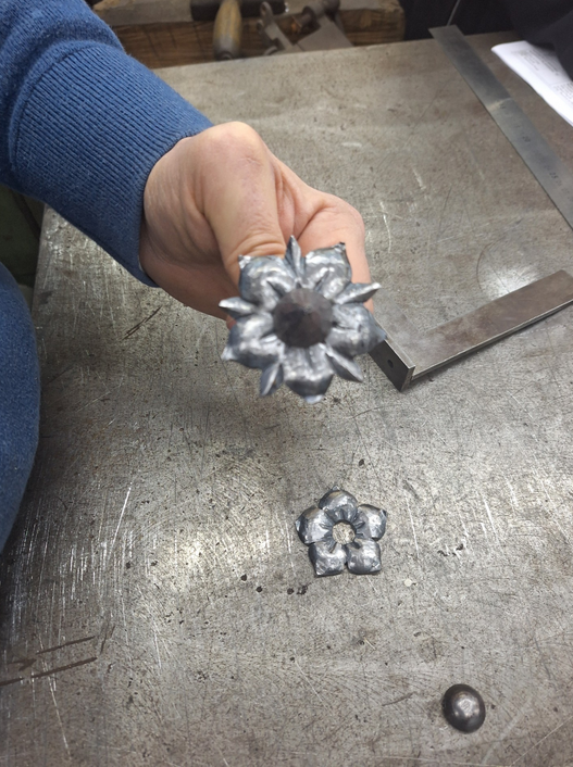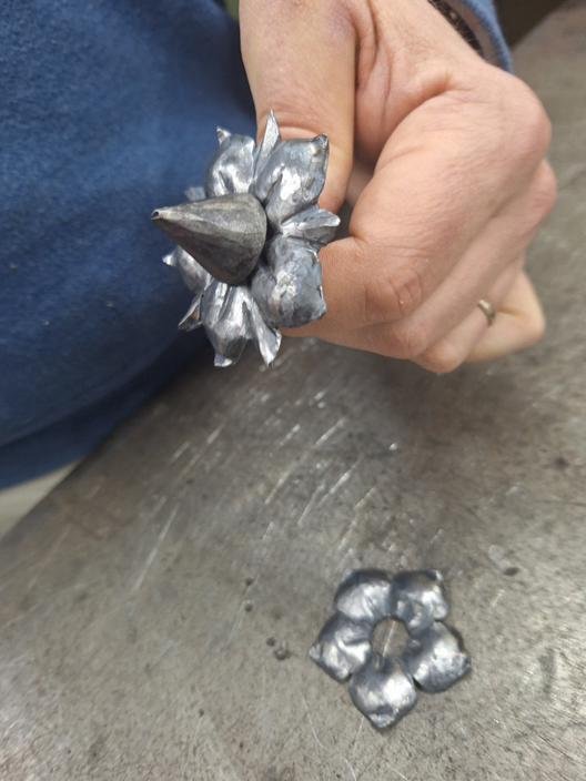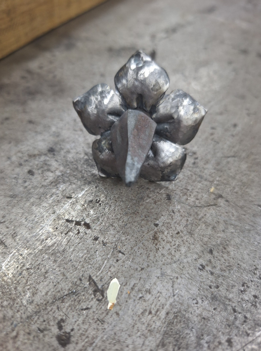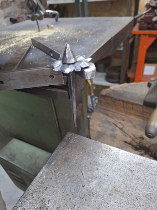 Il a alors entrepris de forger un clou à tête pyramidale à cinq côtés (comme les cinq "pétales" de la "platine") :