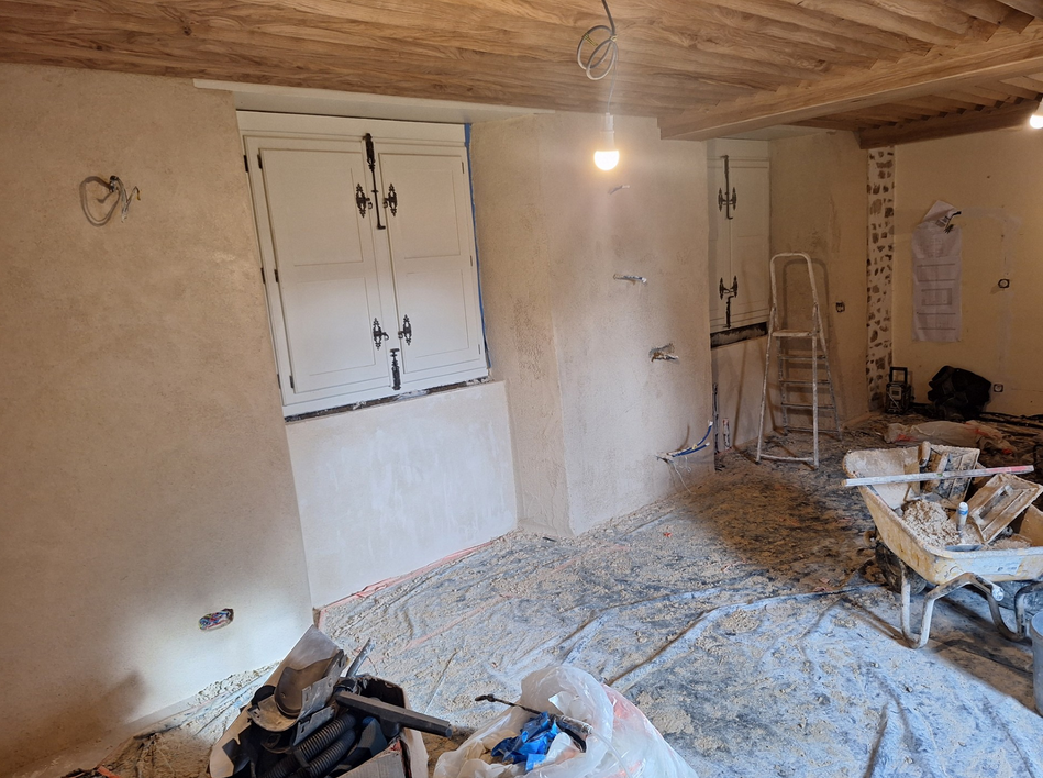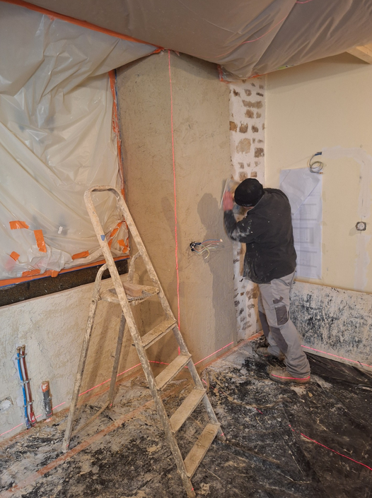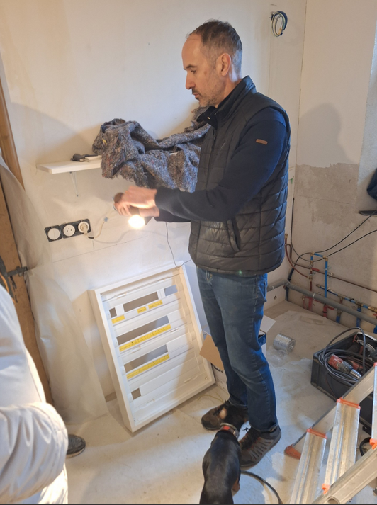 Au moment où il n'aurait pas été inutile que Carole dialogue avec Julien ROBVEILLE à propos des modèles de prises et d'interrupteurs, décisions qui lui appartiennent et qui auraient dû précéder la pose des enduits, elle a disparu du chantier. C'est toujours commode d'essayer d'avancer proprement dans de telles conditions...