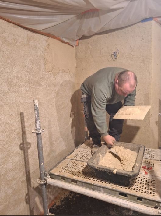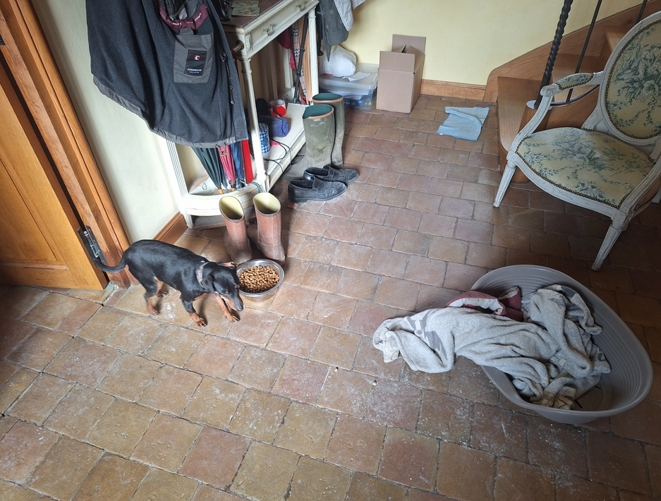 On ne dira jamais assez à quel point un chantier de maçonnerie est salissant, notamment dans des lieux réputés habités comme le bâtiment nord du manoir favori.
