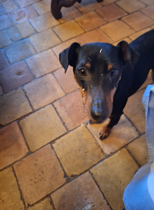 En suivant des yeux les traces de chaux que Spidigon laisse avec ses tout petits ripatons, je m'aperçois qu'il n'y a pas un recoin qui échappe à ses explorations, y compris dans l'escalier et sur le palier.