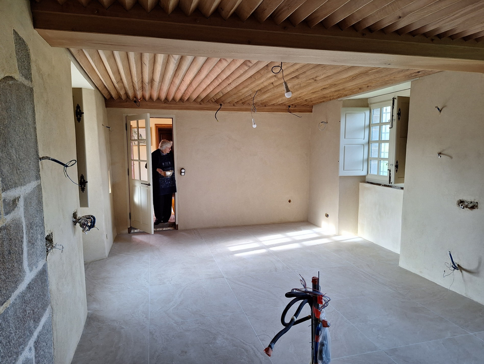 Vu qu'au-dessus du fenestrou de l'arrière-cuisine on aperçoit, servant de linteau, un bout de sablière de chêne, il faudra prévoir une aération pour éviter l'apparition de mérule.