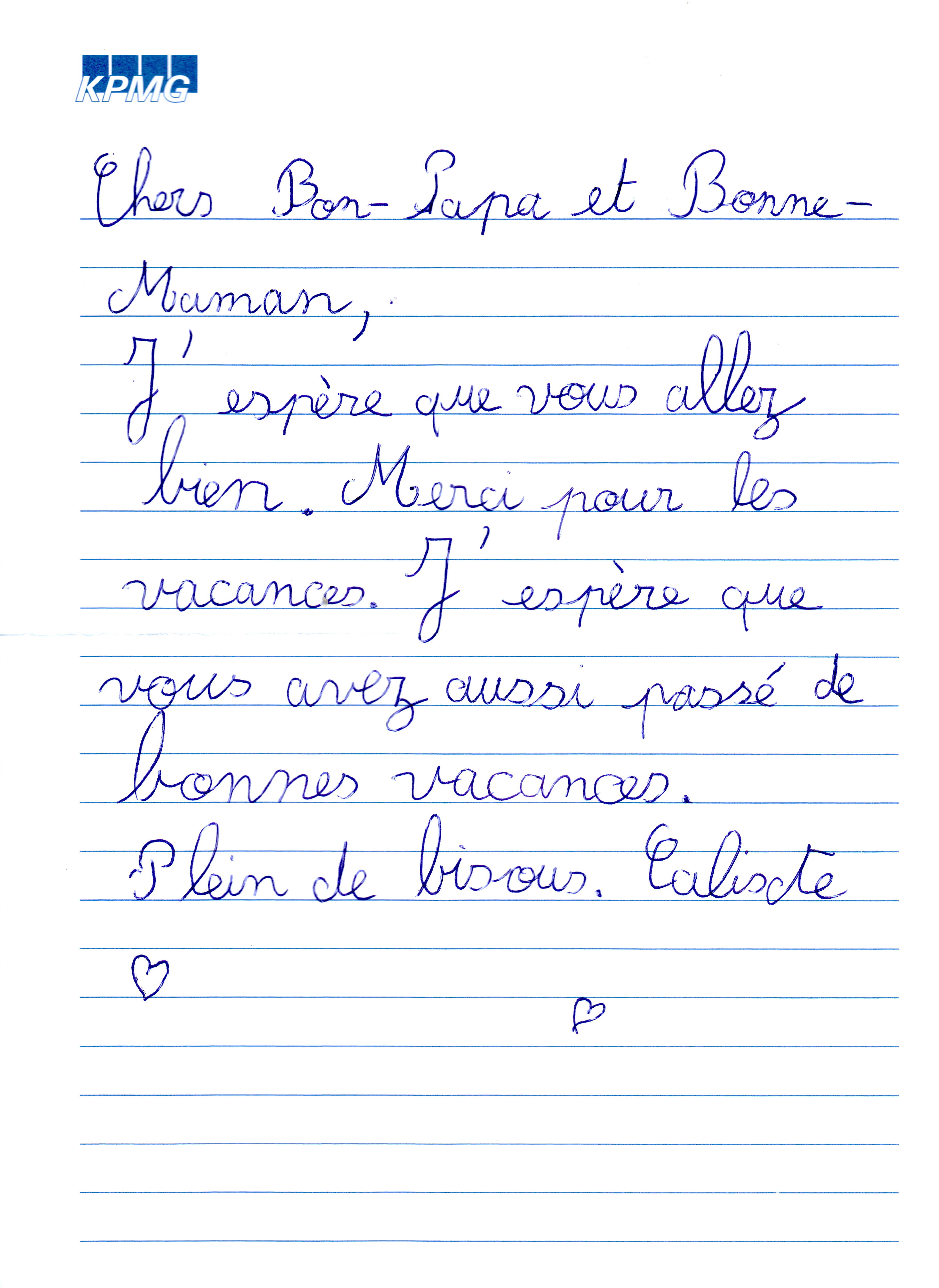 Une lettre, que m'a envoyée de Paris un petit-fils il y a quelque temps, ne m'est toujours pas arrivée ni ne lui a été retournée.