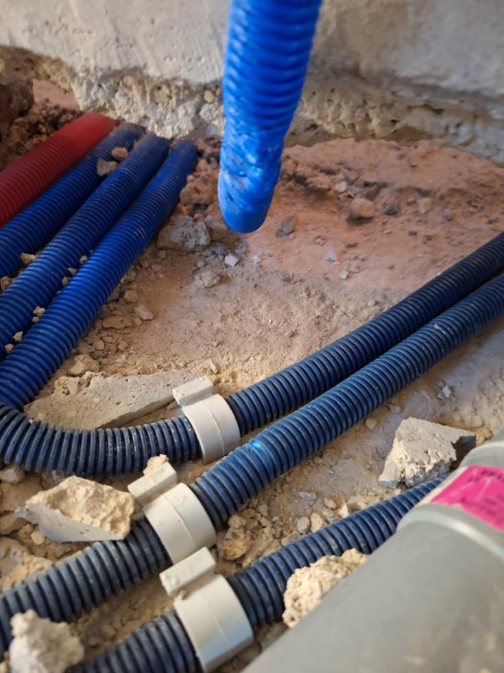 P.S. (à 9 heures 20) : L'électricien m'a proposé de regarder ce qu'il en est. Il vient de m'informer que les tuyaux du plombier ont bien été entamés et qu'il va donc falloir les remplacer.