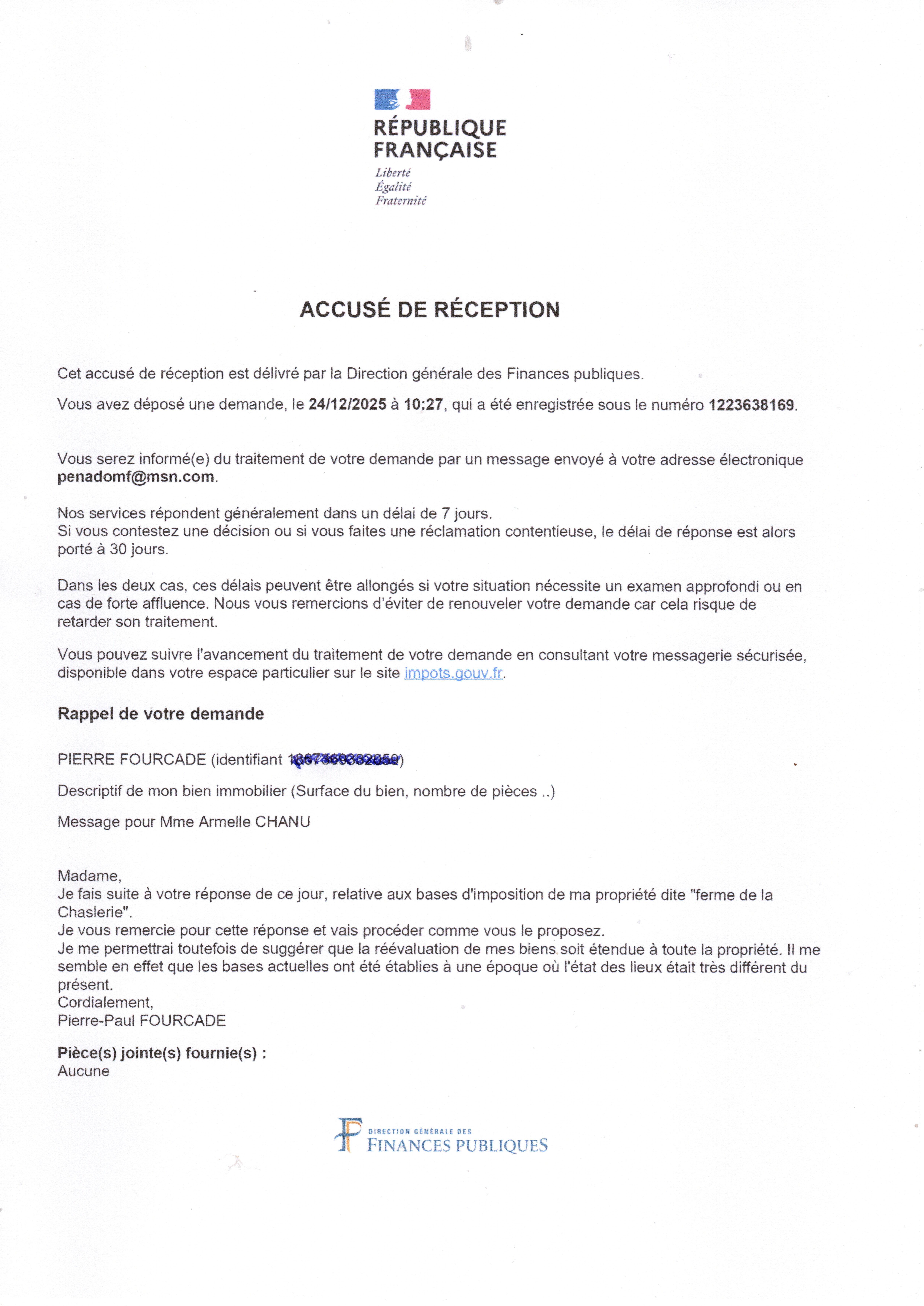 Et puis je me suis ravisé en voyant quelque part que le fisc m'interrogeait à propos de la cave. Voici donc ma réponse telle qu'elle vient de partir, parfaitement en phase avec les dernières informations disponibles :