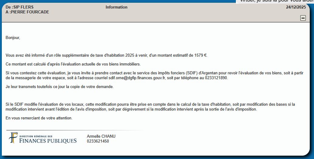 De bon matin, je viens d'être interrogé par le fisc qui souhaite savoir où j'en suis rendu de la mise en œuvre d'un permis de construire relatif à un bâtiment de la Chaslerie.