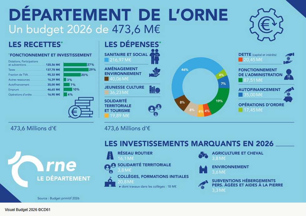 Pris dans la tenaille d’une évolution forte des dépenses sociales et d’une stagnation des recettes, le budget 2026 du Conseil départemental (473,6 M€) lui permet toutefois d’assumer ses missions (378,6 M€) et de préserver son programme d’investissements d’avenir (94,9 M€), sans accentuer l’endettement.