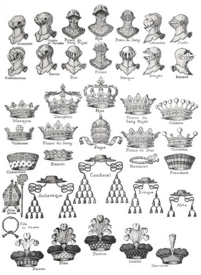 « L’héraldique est au XVIIIe et au XIXe siècle partout. On la retrouve sur les reliures, les armes blanches, les pièces de pouce des armes à feu, les châssis de tableaux, les sceaux, les livrées, les boutons.