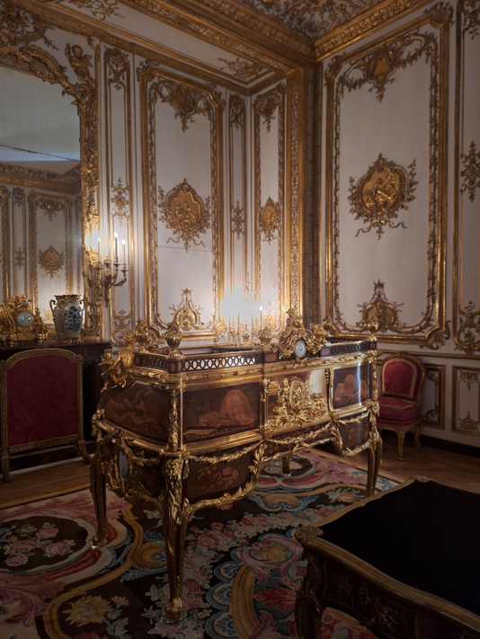 Première partie de l'après-midi consacrée, pour l'essentiel, aux appartements privés de Louis XV et de Louis XVI, sous la conduite de Bertrand RONDOT (un sosie de Hugues HOURDIN), conservateur général du patrimoine (mobilier et objet d’art du XVIIIe siècle).