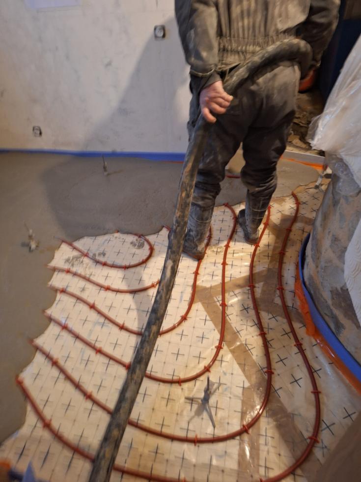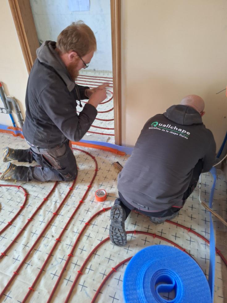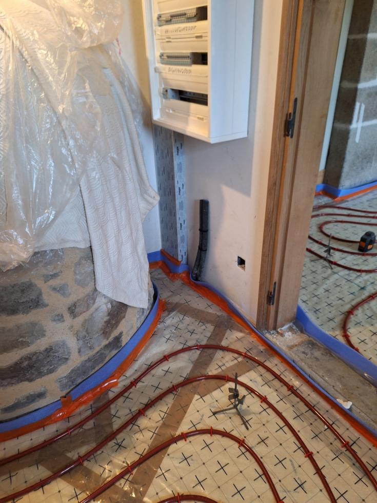 Plusieurs déconvenues ce matin que je découvre aux côtés des deux compagnons de "JANNELEC" venus installer le circuit de chauffage par le sol :