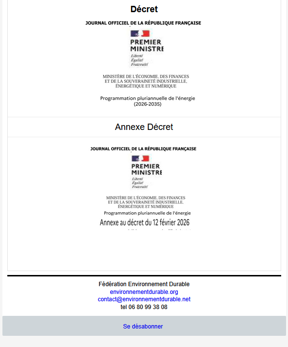 Finalement, le Premier ministre Sébastien Lecornu est parvenu à ses fins et a su profiter, habilement, de circonstances politiques favorables pour promulguer par décret une PPE3 (Programmation pluriannuelle de l’énergie version 3) à peine modifiée, contrairement aux promesses, et satisfaire ainsi les lobbys renouvelables et antinucléaire. Le Premier ministre et le ministre de l’Économie et de l’Énergie Roland Lescure ont signé tous deux le décret paru au Journal Officiel daté du vendredi 13 février.
