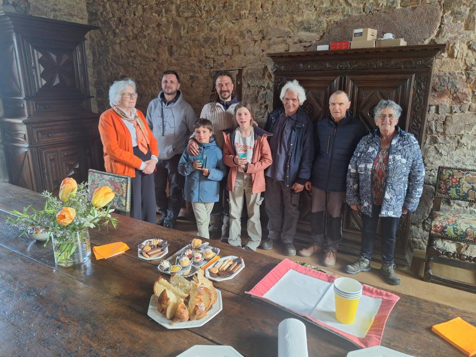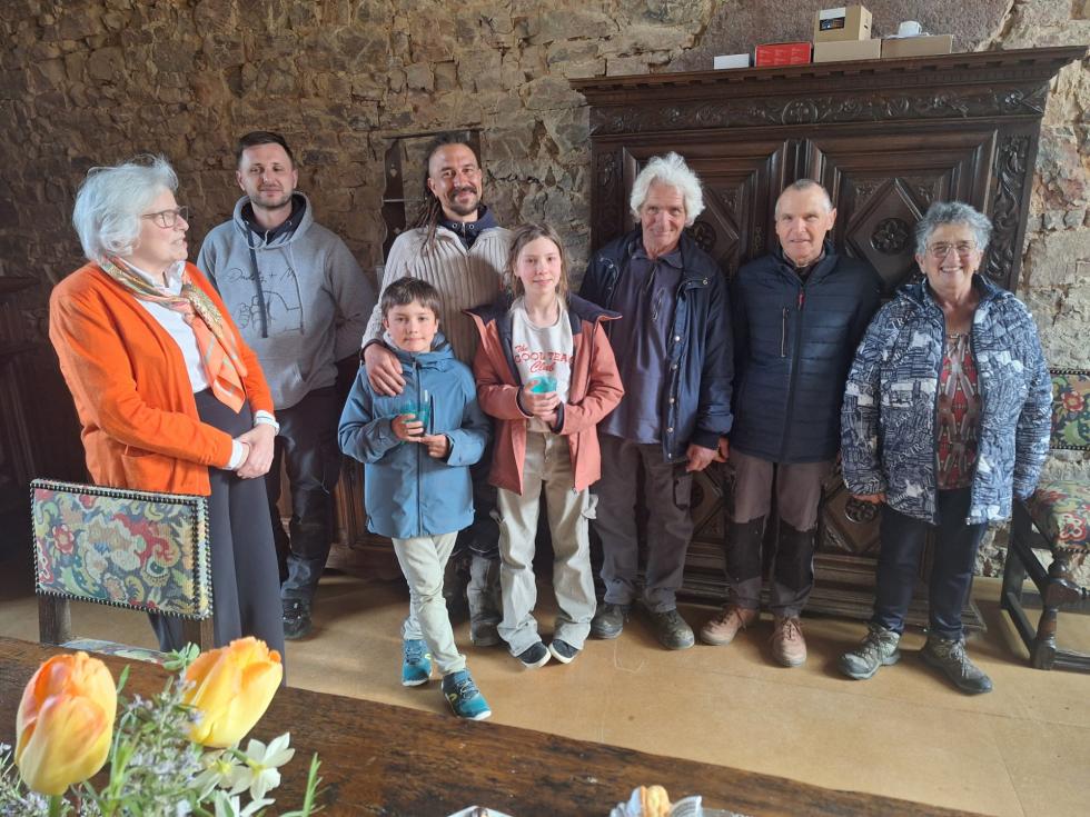 Avaient répondu à notre invitation nos voisins Hubert et Annick GAHERY (chez qui Francis avait l'habitude de se faire servir un café), Igor et Aurélien, ce dernier accompagné de ses deux enfants, Hilda et Angus (qui ont l'âge des deux aînés de nos petits-enfants) :