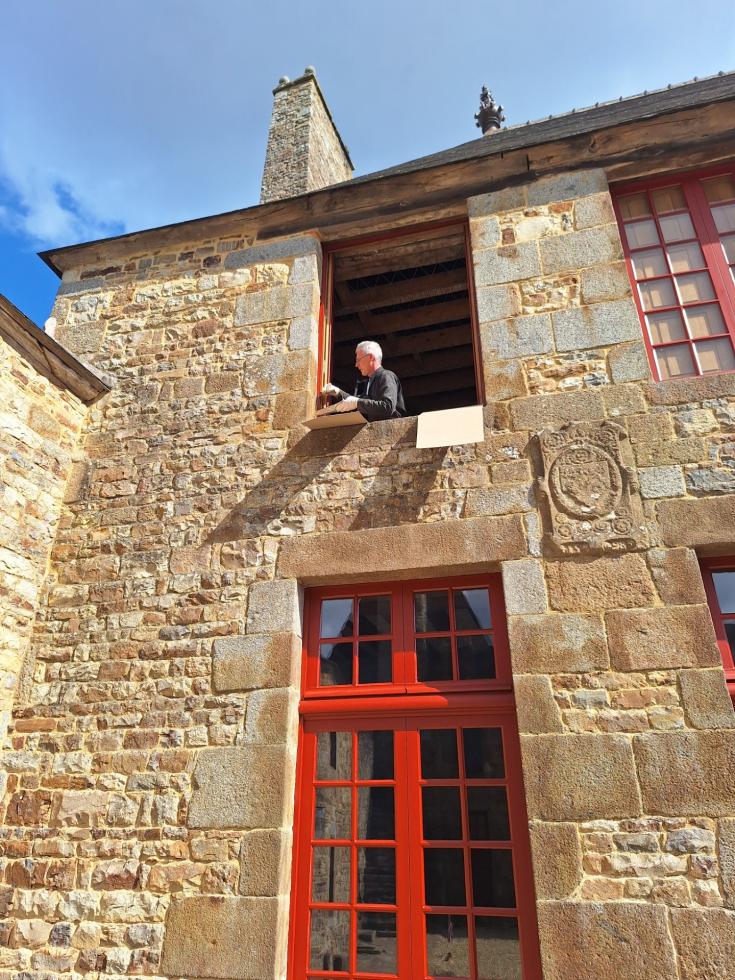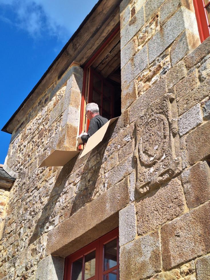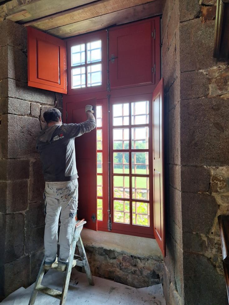 Hier, Sébastien LEBOISNE a fini son intervention sur les menuiseries extérieures de la "tranche A" de restauration des menuiseries extérieures du logis (hors porte extérieure de l'arrière-cuisine).