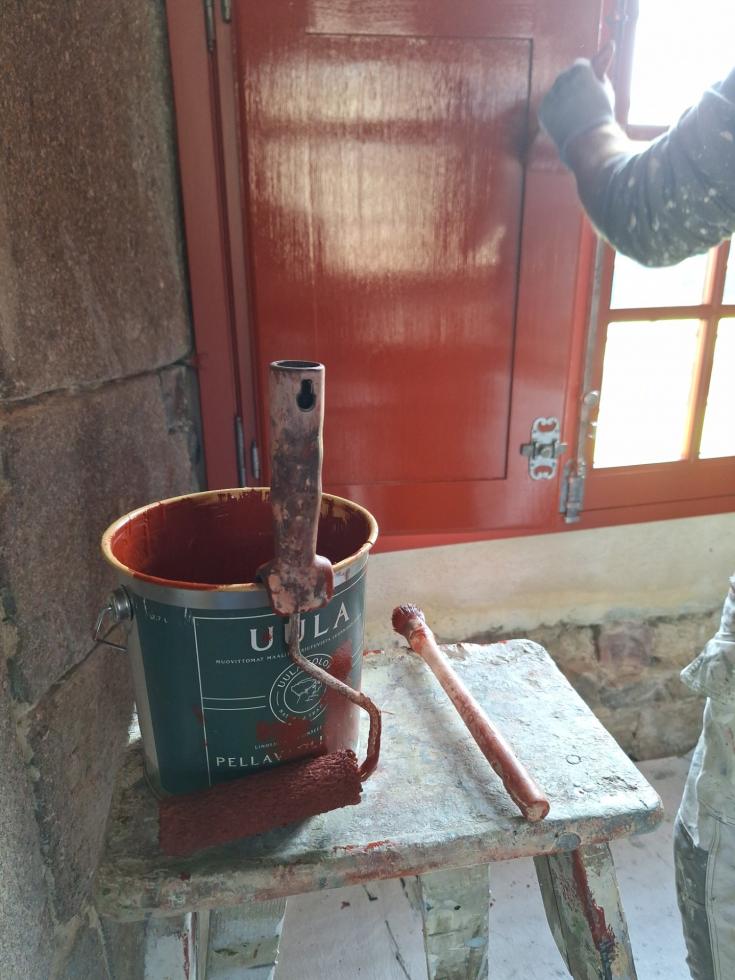 Ce matin, Mr SPOON passe la troisième couche de peinture sur les volets intérieurs des fenêtres du rez-de-chaussée de cette tranche :