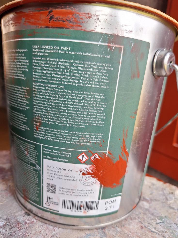 Il m'a expliqué que j'ai trop attendu pour le faire intervenir, comme le montre le bas de la porte qu'il faudra que je fasse raboter (par Sébastien). Il n'avait pas eu le temps de préparer l'une des peintures de sa fabrication, donc a dû utiliser une peinture du commerce. Il faudra donc qu'il intervienne de nouveau, ce qu'il pourra faire lorsque, à la fin de l'hiver prochain, il aura à peindre les menuiseries extérieures de la "tranche B".