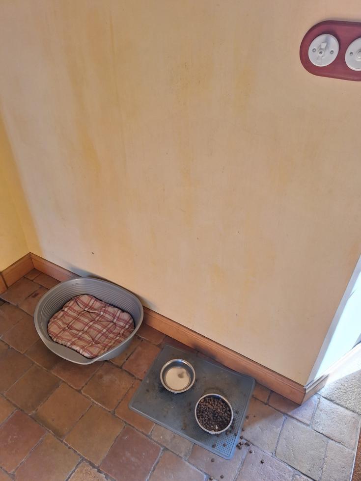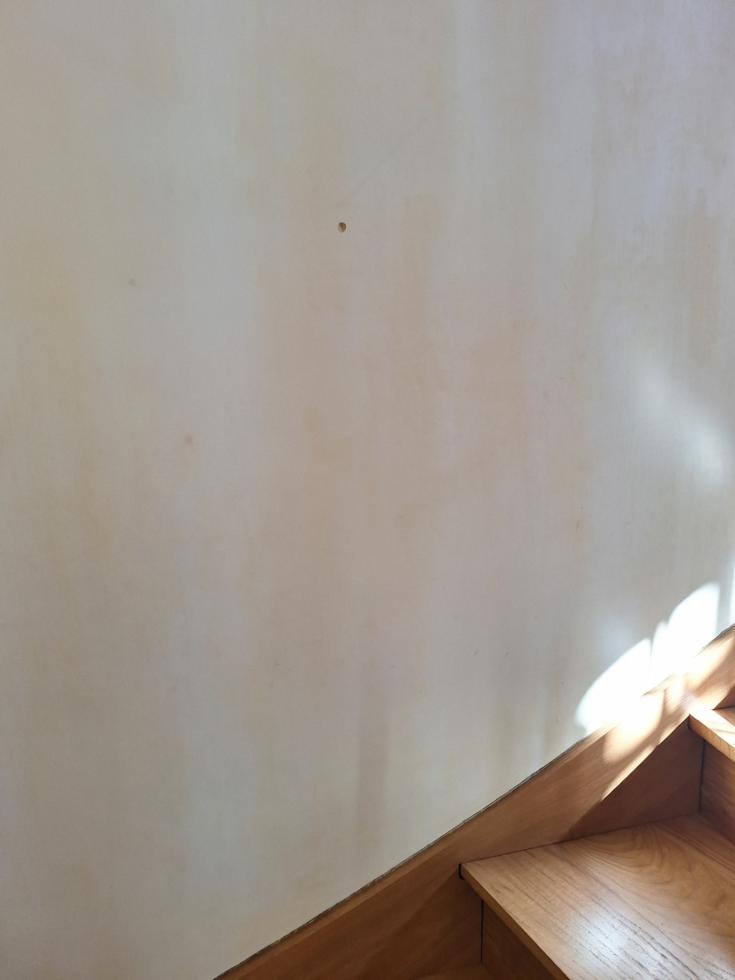 J'ai demandé à Mr SPOON que, lorsqu'il reviendra, il rebadigeonne de chaux la cage d'escalier du bâtiment nord, ainsi que ma chambrette. Du fait, entre autres, des turbulences récurrentes de Spidigon ou, occasionnelles, de petits-enfants pleins de vitalité, l'un comme les autres, tout cela a reçu des coups ou a été taché à divers endroits :