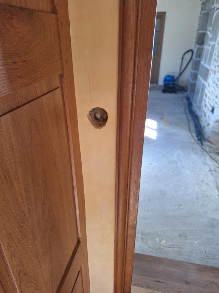 - porte de l'arrière-cuisine : montage de la menuiserie, ferronneries, judas, clous à tête de diamant