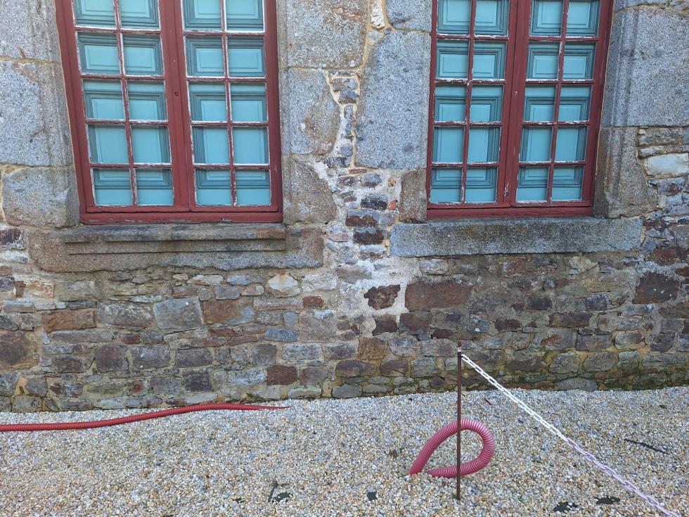 Benjamin LE COUILLARD m'indique avoir trouvé dans mes stocks le granit qu'il pourrait tailler en vue de remplacer l'appui de la fenêtre sud-ouest du salon du logis. Je lui ai donné mon accord de principe pour ce projet qui serait à réaliser avant la très prochaine pose des menuiseries extérieures de la "tranche B" (au sens de la D.R.A.C.) :