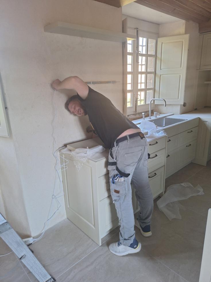 Le compagnon du cuisiniste est revenu ce matin pour compléter ses finitions :