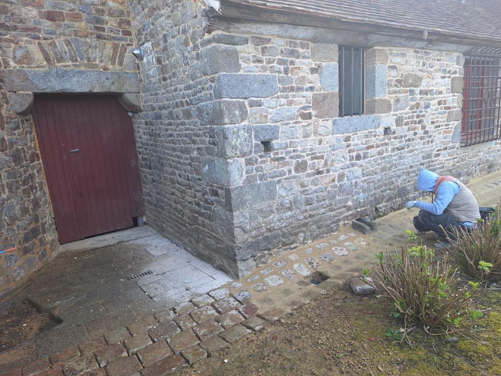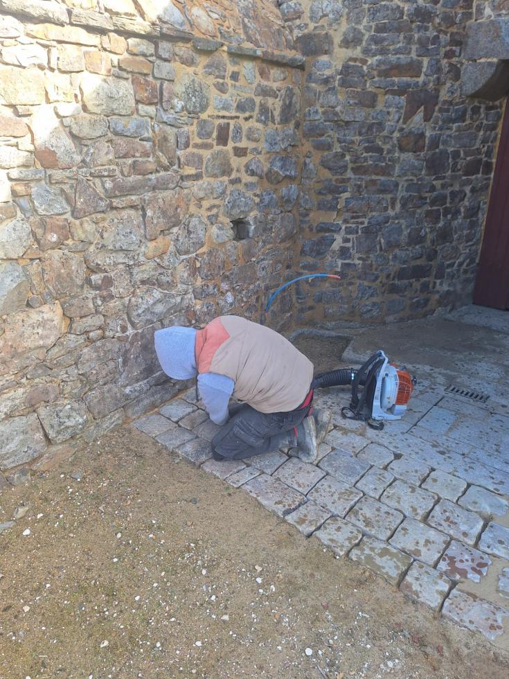 Il s'agissait en effet que, dans l'avant-cour et au pied des murs sud en question, on ne patauge plus dans la boue et que cette terrasse puisse supporter le passage d'un tracteur ou la pose des échafaudages nécessaires à la restauration de couvertures.