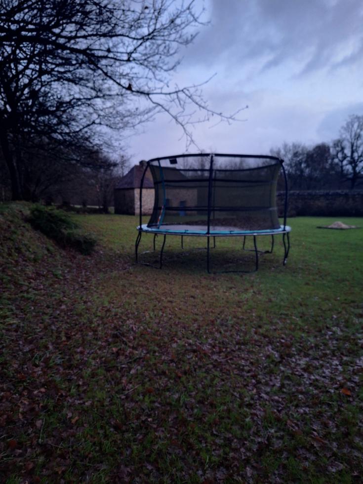 J'ai oublié de demander à Francis de déplacer le trampoline. Espérons qu'il ne s'envole pas et que résistent le vieux poirier près du colombier ainsi que les fermetures provisoires de diverses ouvertures des bâtiments sur cour.