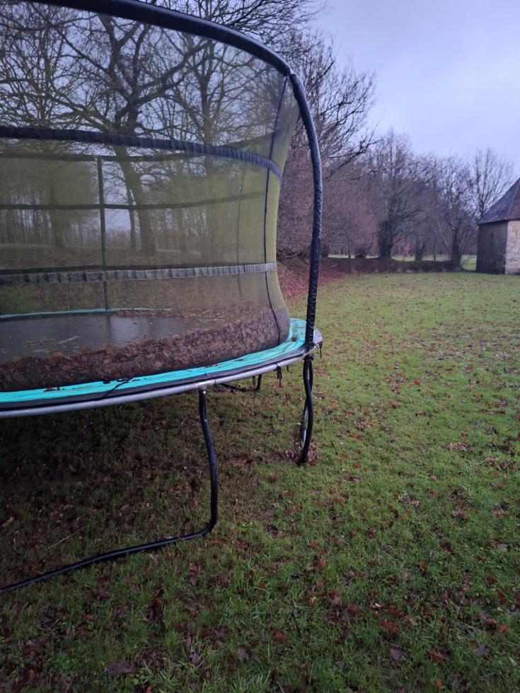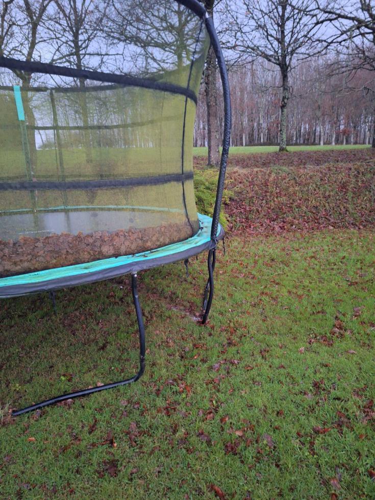... mais le trampoline a déménagé sous l'effet de la tempête. Il faudra que, lundi, je vérifie avec Francis si, comme il semble, ses pieds ont été faussés :