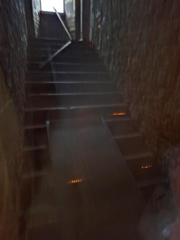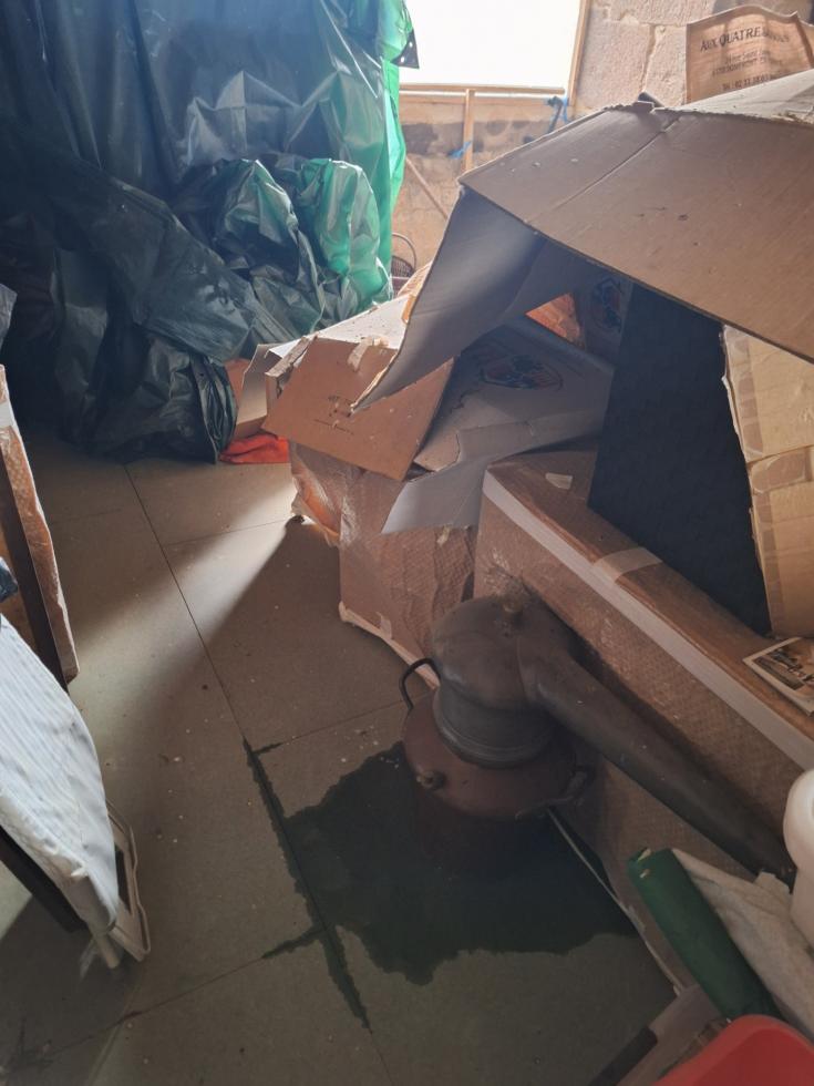 Retour dans le logis, la cage d'escalier, où tout a valdingué, est inondée...