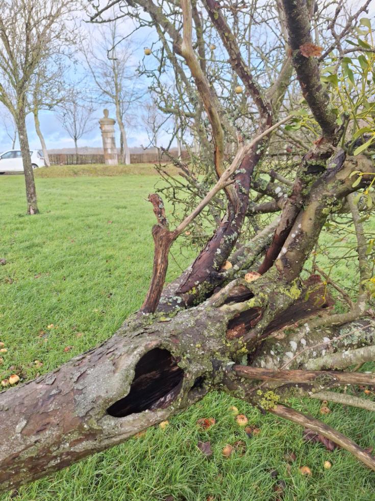 ... et qu'un vieux pommier creux a subi le même sort, ce qui est moins gênant :