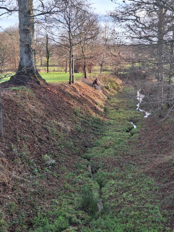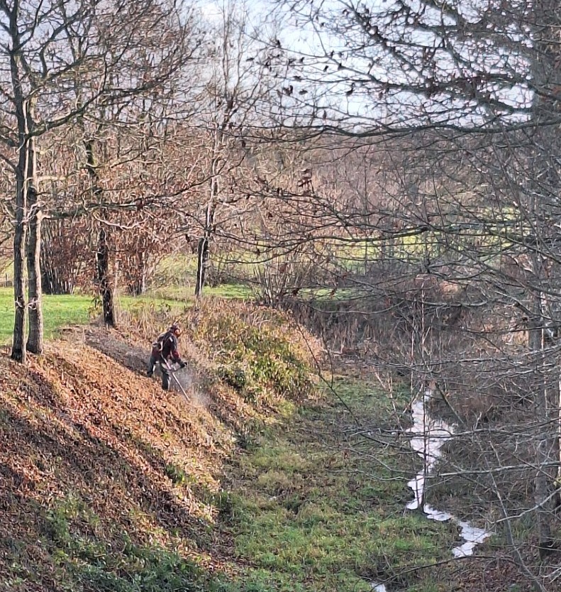 Profitant d'un rayon de soleil, Francis a chargé Aurélien de débroussailler les douves :