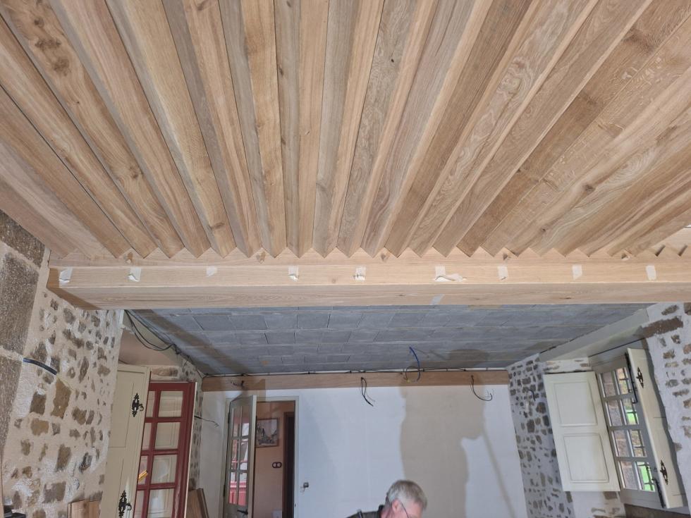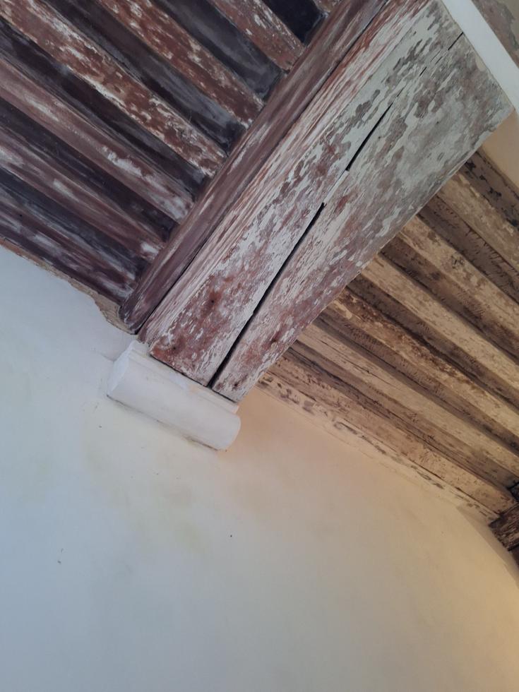 Dans mon esprit, la pose de tels corbeaux complèterait de façon bienvenue le coffrage des deux poutres du plafond de la salle-à-manger du logis de la Chaslerie. Un tel coffrage a été documenté dans la demande de permis de construire déposée en juillet dernier en vue de la restauration de l'intérieur de ce logis.