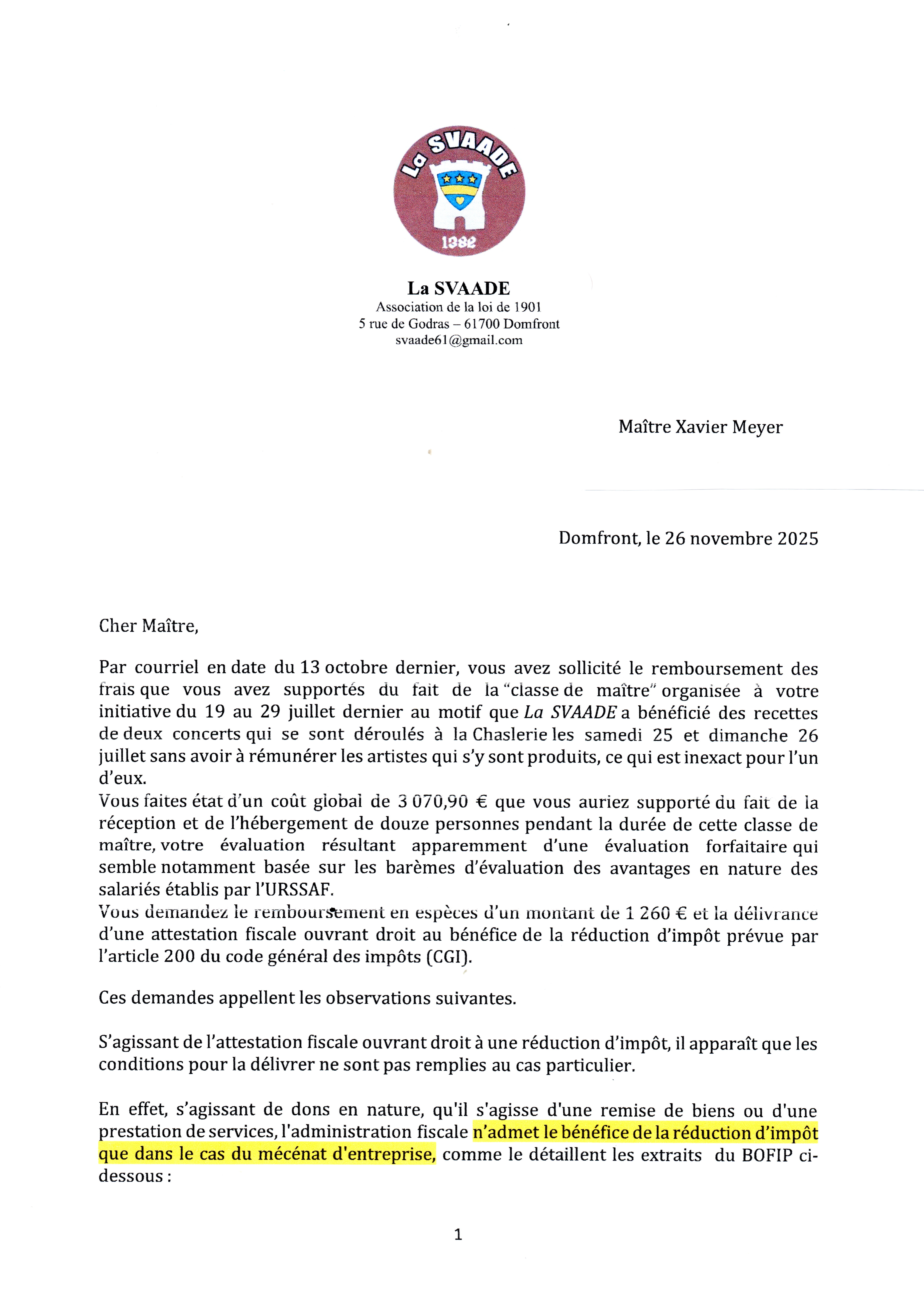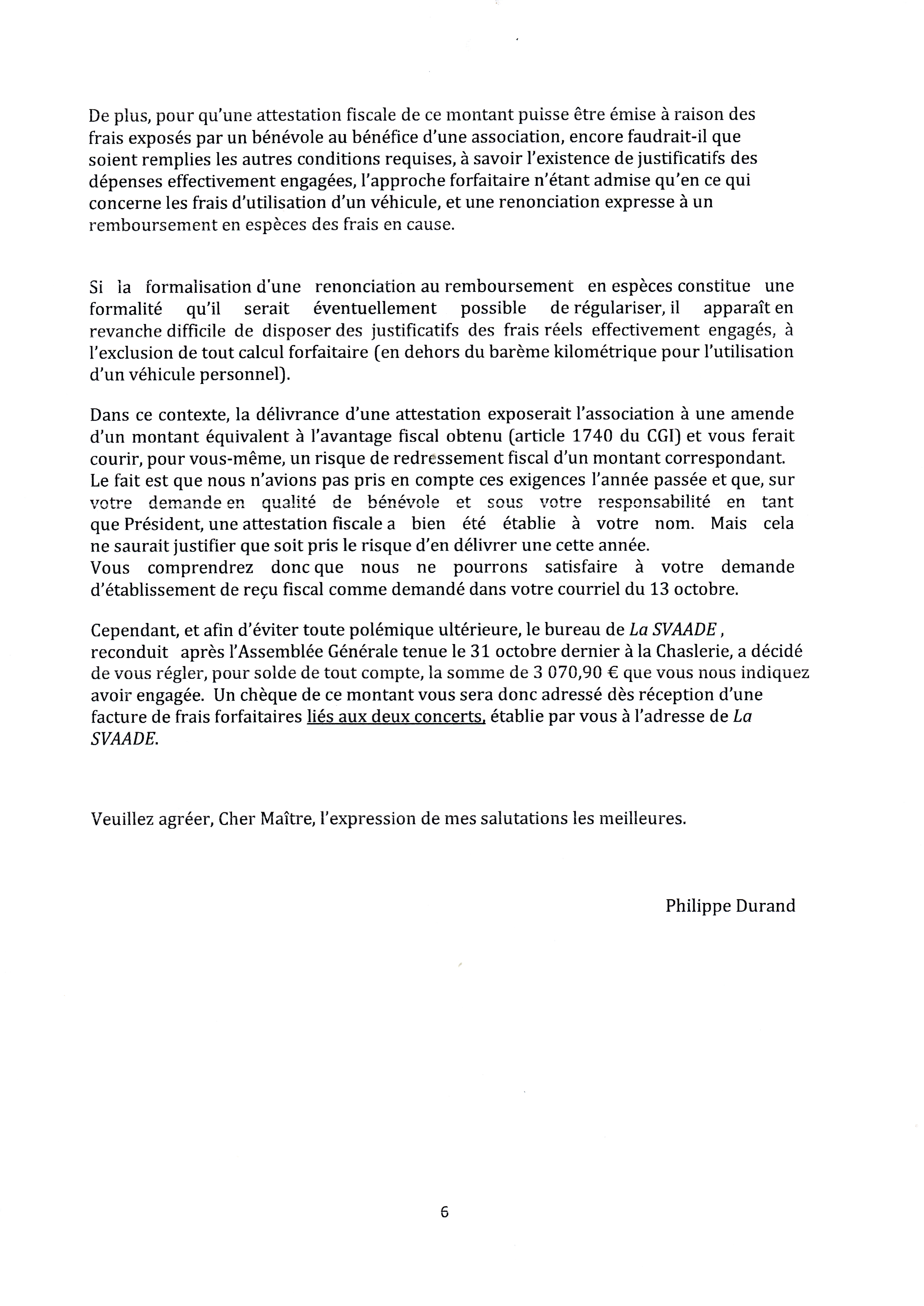 Voici la lettre préparée et signée, conformément à une résolution de la dernière A.G. de La SVAADE, par le trésorier de cette association, destinée au président démissionnaire de celle-ci et rédigée dans un style que l'on pourrait sans doute qualifier de "juridiste", style que ce personnage a laissé, dans beaucoup de mémoires, le souvenir d'affectionner tout particulièrement, tout comme l'autoritarisme :