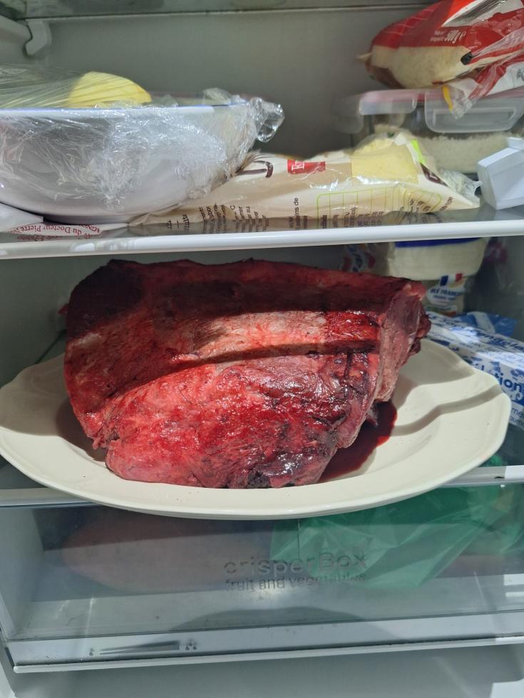 Avant de repartir à Paris assez précipitamment, Carole m'a signalé que mes chasseurs favoris m'ont fait cadeau d'un magnifique et énorme morceau de sanglier...