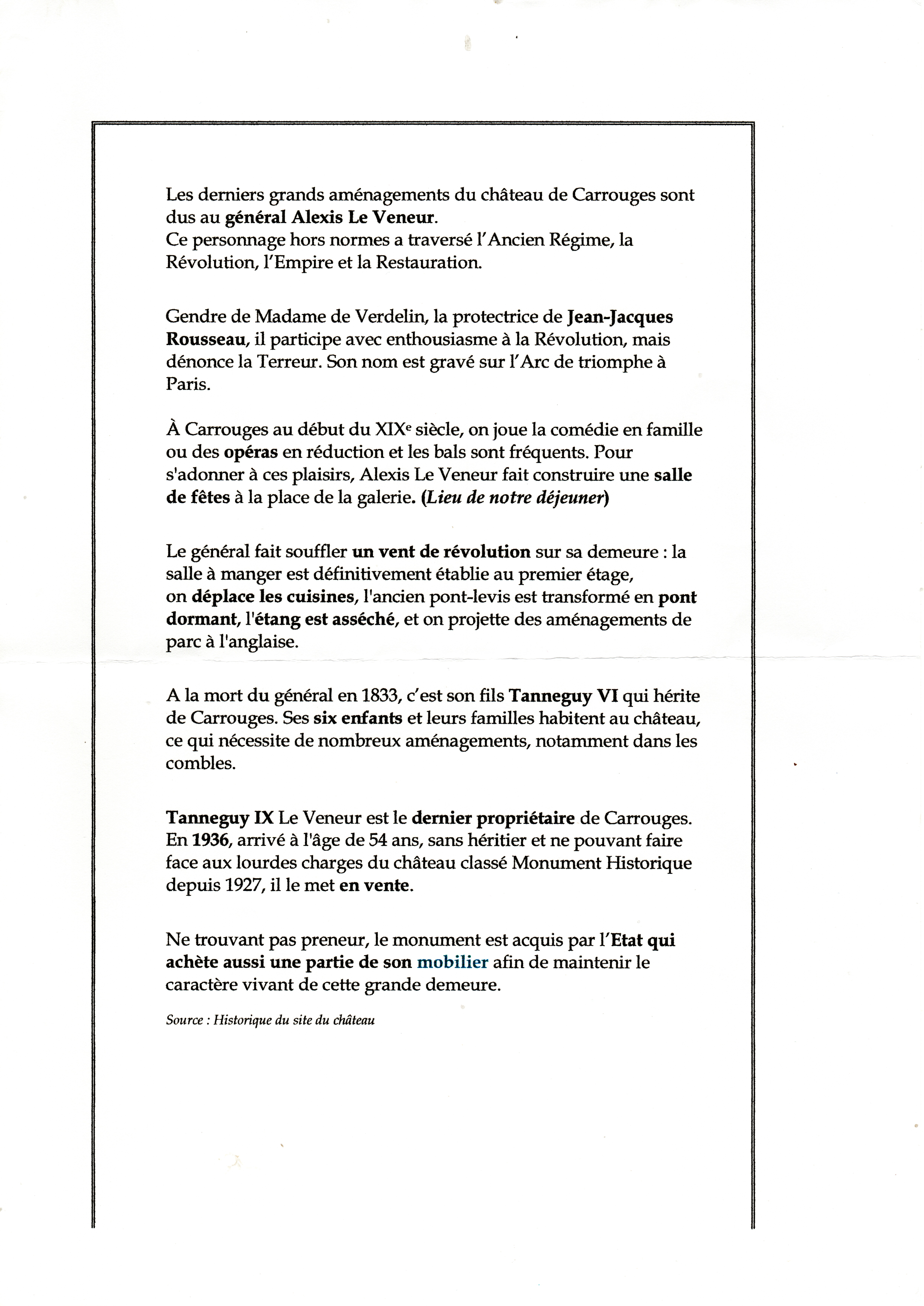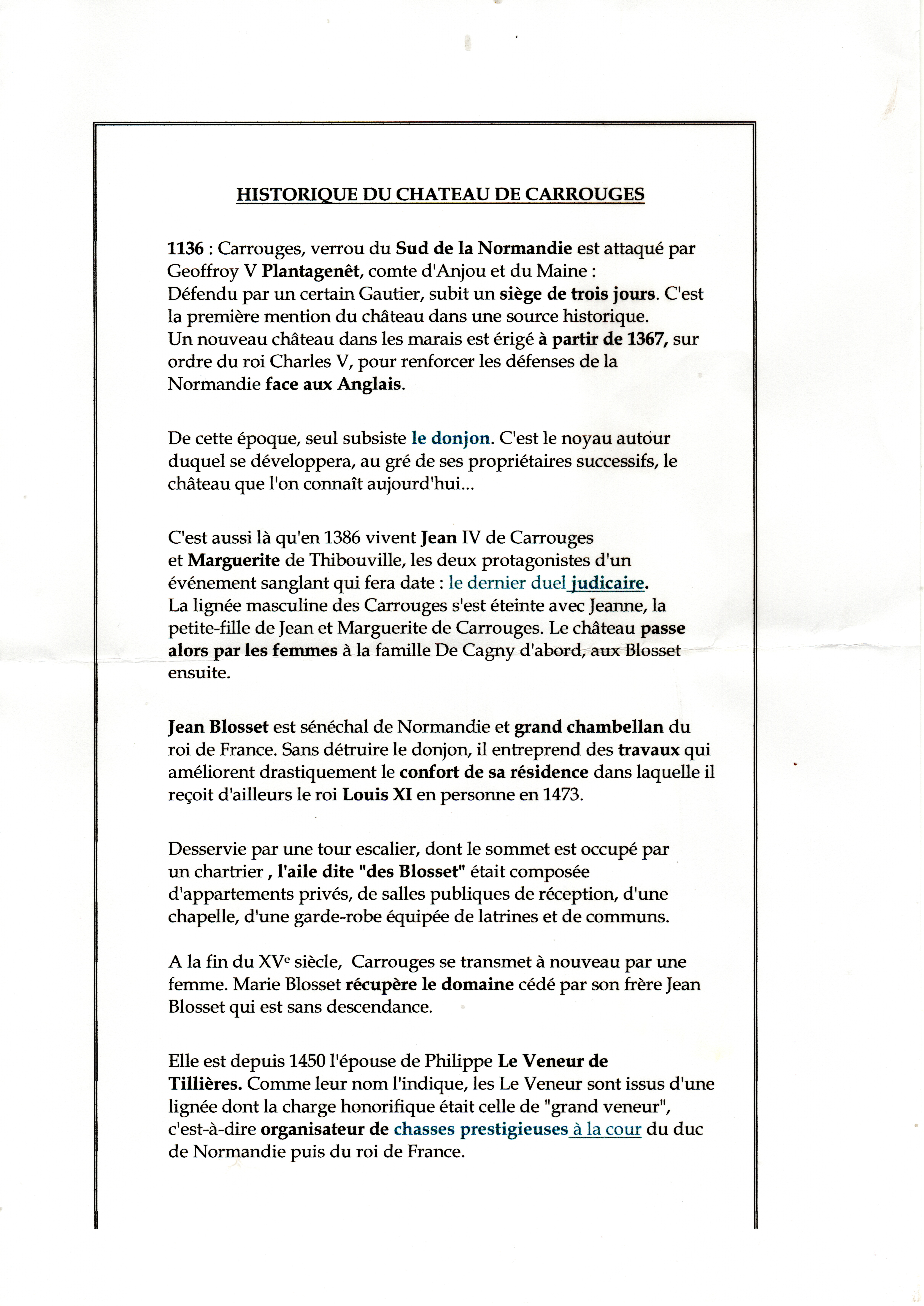 P.S. (à 20 heures 30) : Voici l'historique de Carrouges qui nous fut distribué à l'occasion de cette visite :