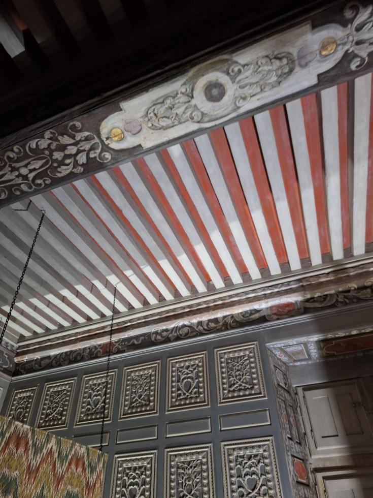 Je crois qu'une fois de plus, j'ai eu raison de n'en faire qu'à ma tête en décidant, cette fois, de doter le plafond de la cuisine d'un décor imité d'un modèle observé au manoir du Grand Taute :