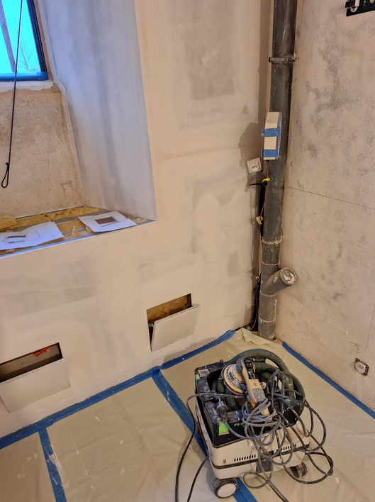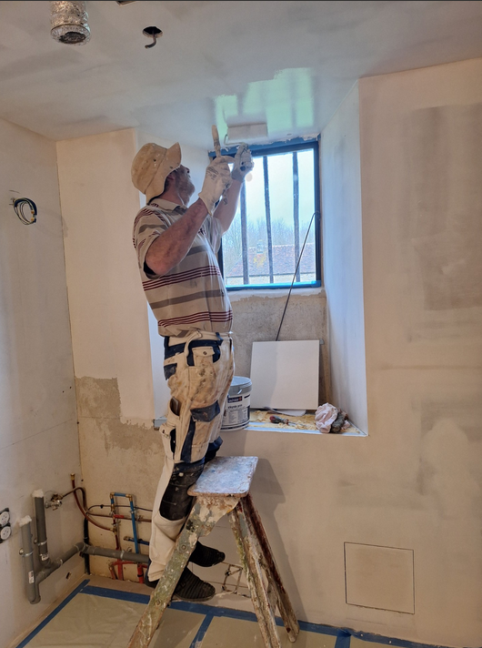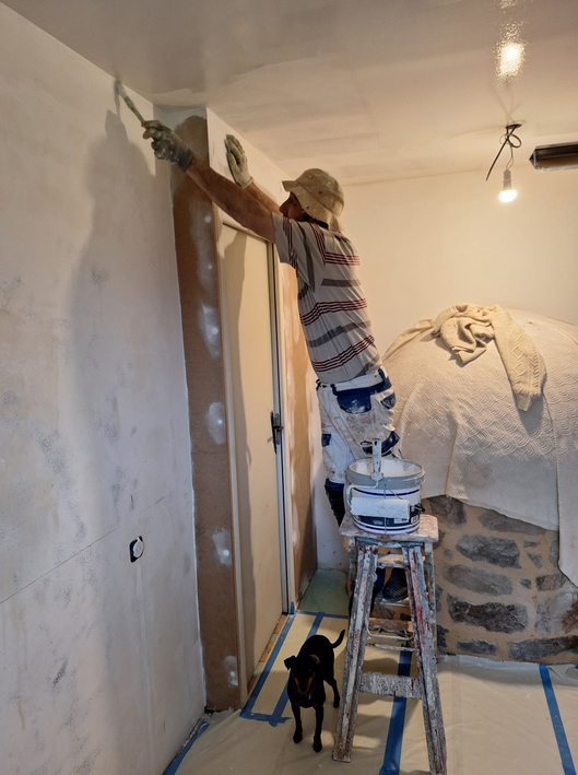 Mr SPOON commence à préparer son chantier dont l'essentiel, aujourd'hui, sera donc de peindre le faux-plafond :