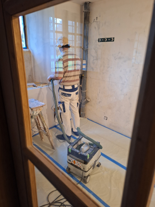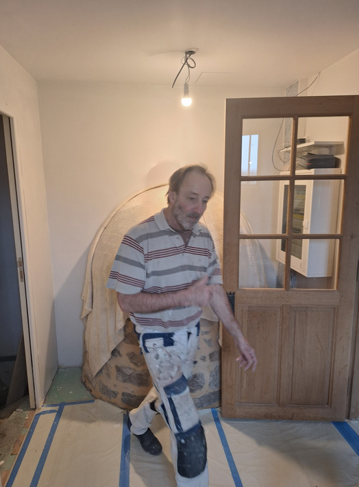 En dépit d'un emploi du temps chargé, Mr SPOON (Emmanuel LESCUYER à l'état-civil) accepte de venir après-demain donner une première couche de peinture dans l'arrière-cuisine, principalement au faux-plafond et au coffrage réalisés par le plaquiste. Je l'en remercie.
