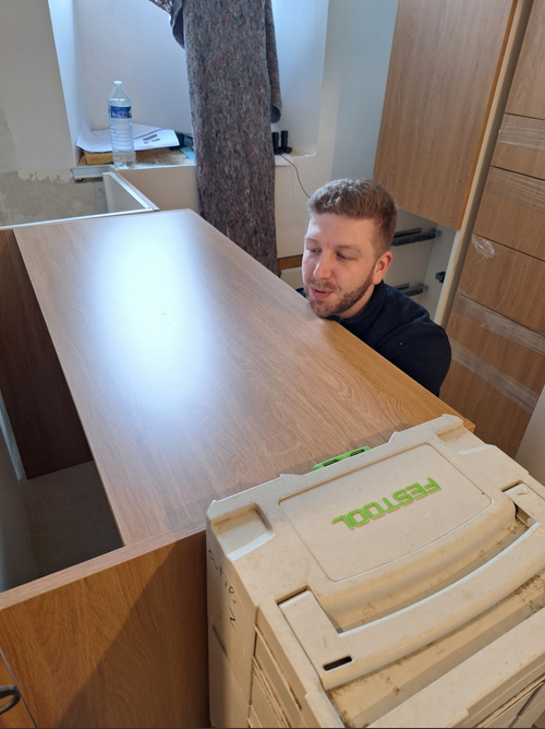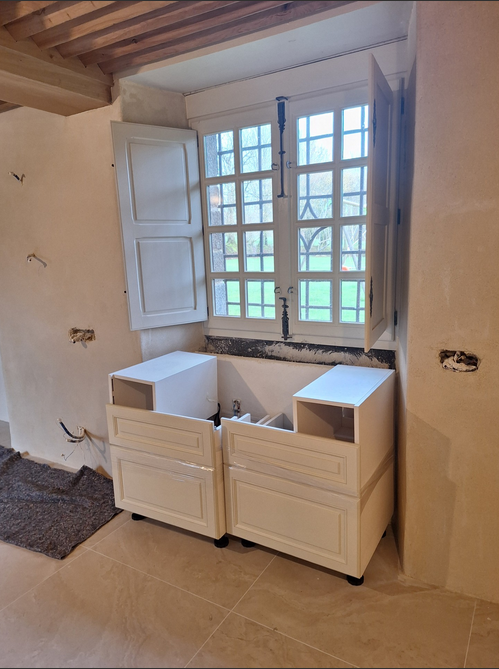 L'équipe du cuisiniste débarque les nouveaux meubles. Je photographie ce que donne sur place leur couleur en vraie grandeur :