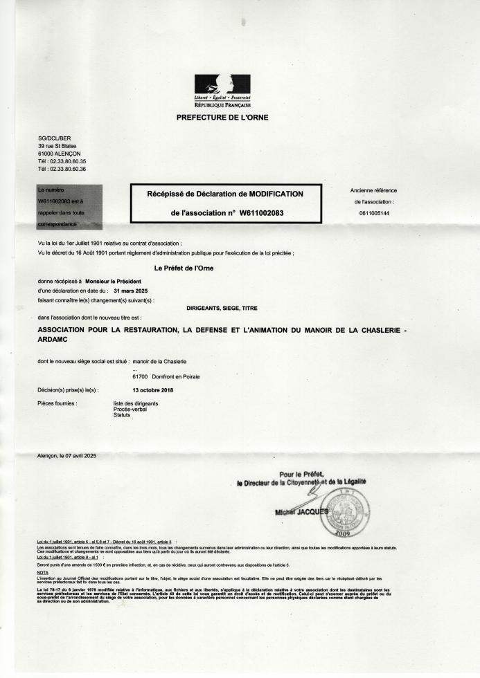 - la composition du bureau actuelle, c'est-à-dire après l'A.G. du 28 mars dernier (dont les données n'ont pas encore prises en compte par les services de la préfecture de l'Orne, saisis) ;