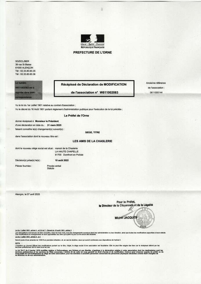 - si vous avez bien reçu la "déclaration de commencement d'exécution de travaux" relative à la "tranche A" de restauration des menuiseries extérieures du logis de la Chaslerie ;