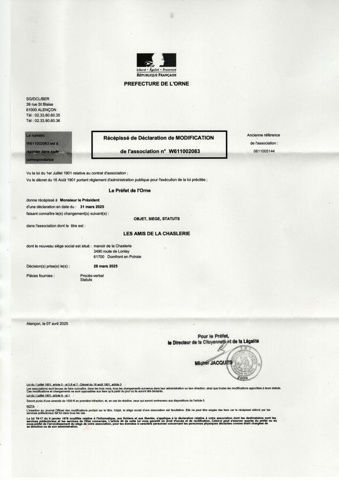 - les statuts actuels, c'est-à-dire après l'A.G.E. du 28 mars dernier (dont les données n'ont pas encore prises en compte par les services de la préfecture de l'Orne, saisis) ;