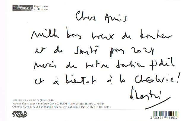 Je te présente tous mes vœux les meilleurs pour cette nouvelle année 2024, pour toi-même, ta famille et les membres du quatuor "Elmire", une certaine famille aussi, sans doute. Vœux de joies et d'émotions musicales intenses notamment ...